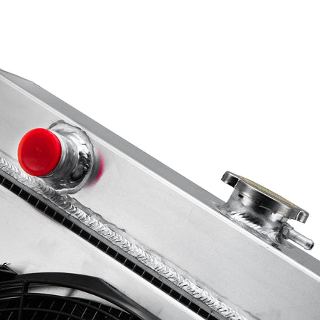 This Aluminum Radiator is designed to provide maximum cooling efficiency to prevent premature engine failure. Its light-weight, and high-heat transferring aluminum features a tube and fin design that, dramatically increases surface area that enables the heat to dissipate more efficiently. This Aluminum Radiator is at least 30%-45% more efficient than stock ones. Most importantly, it has a much higher capacity for coolant than stock ones, which means that your cooling system will be more efficient and will be more resistant to temperature surges in racing applications.