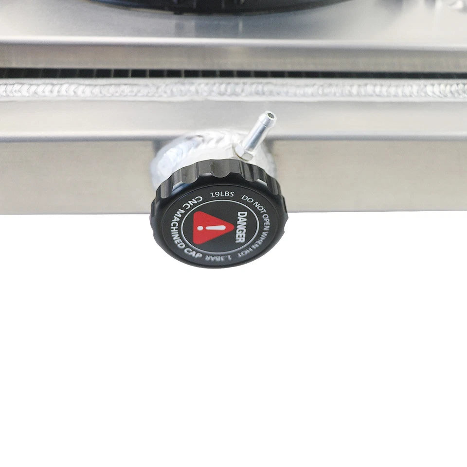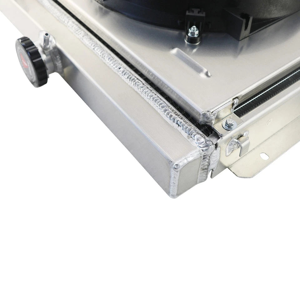 This AA5052 Aluminum Radiator is designed to provide maximum cooling efficiency to prevent premature engine failure. Its light-weight, and high-heat transferring aluminum features a tube and fin design that, dramatically increases surface area that enables the heat to dissipate more efficiently. This AA5052 Aluminum Radiator is at least 30%-45% more efficient than stock ones. Most importantly, it has a much higher capacity for coolant than stock ones, which means that your cooling system will be more efficient and will be more resistant to temperature surges in racing applications.