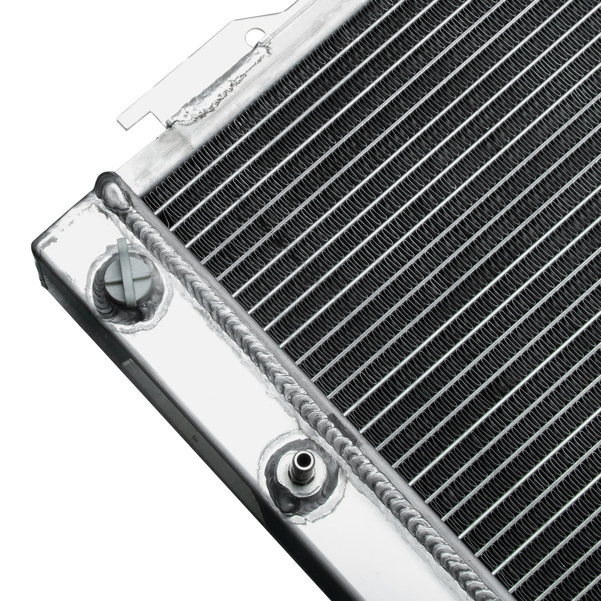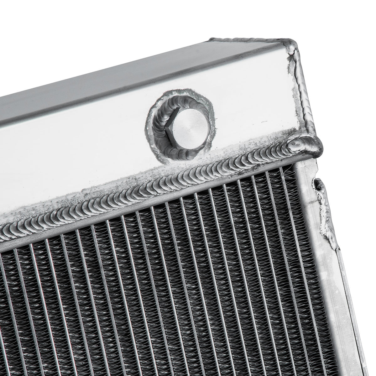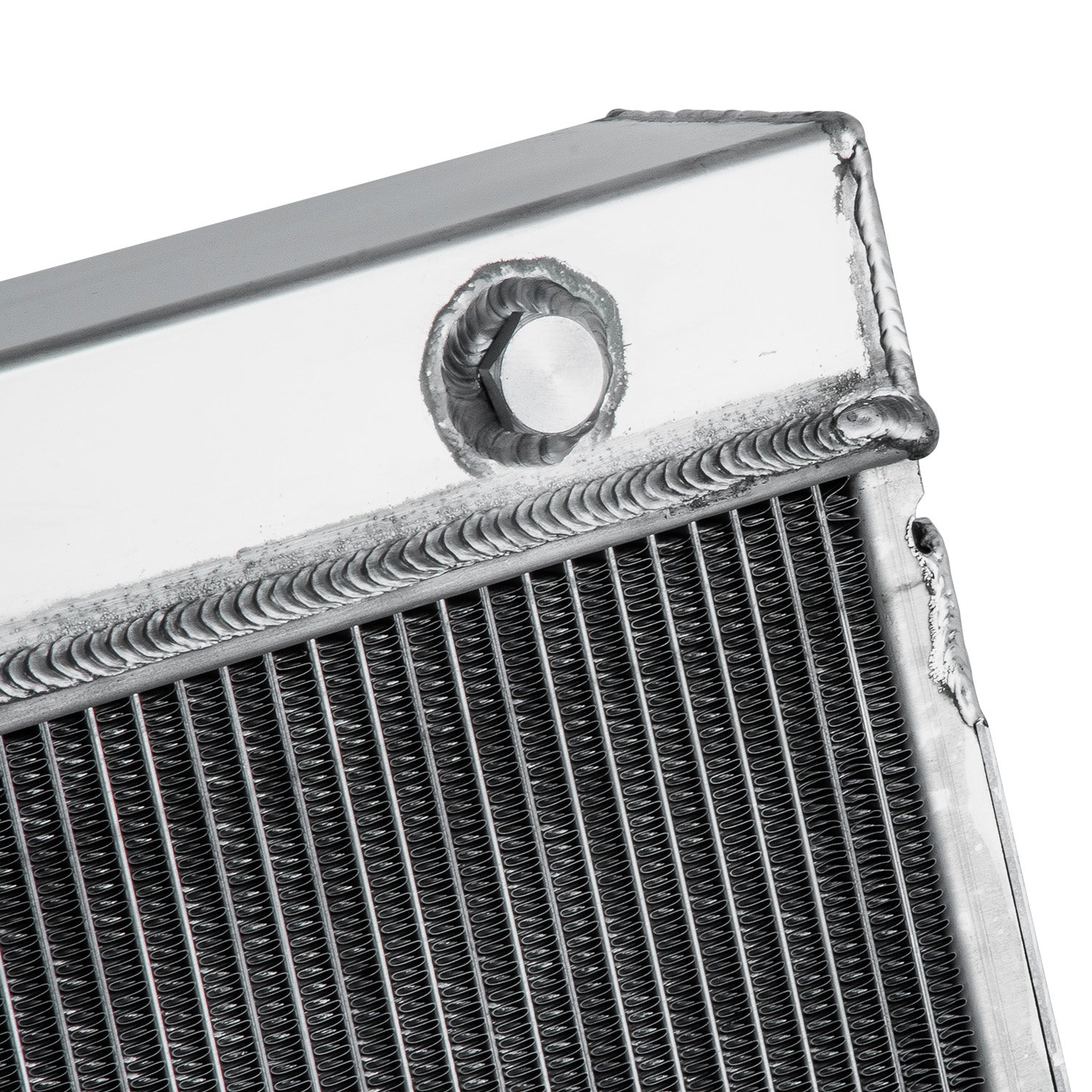 This aluminum radiator is designed to provide maximum cooling efficiency to prevent premature engine failure. Its light-weight, and high-heat transferring aluminum features a tube and fin design that, dramatically increases surface area that enables the heat to dissipate more efficiently. This Aluminum Radiator is at least 40% more efficient than stock ones. Most importantly, it has a much higher capacity for coolant than stock ones, which means that your cooling system will be more efficient and will be more resistant to temperature surges in racing applications.