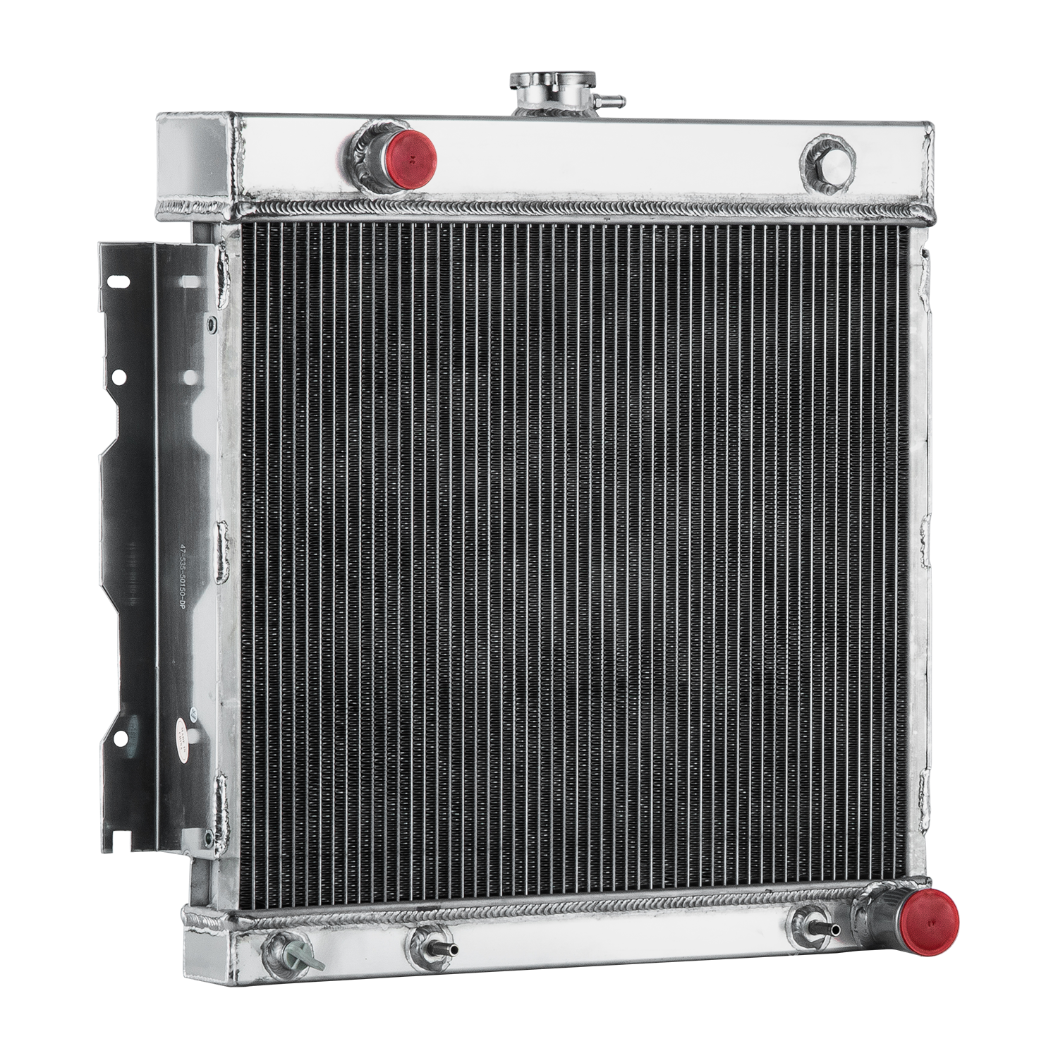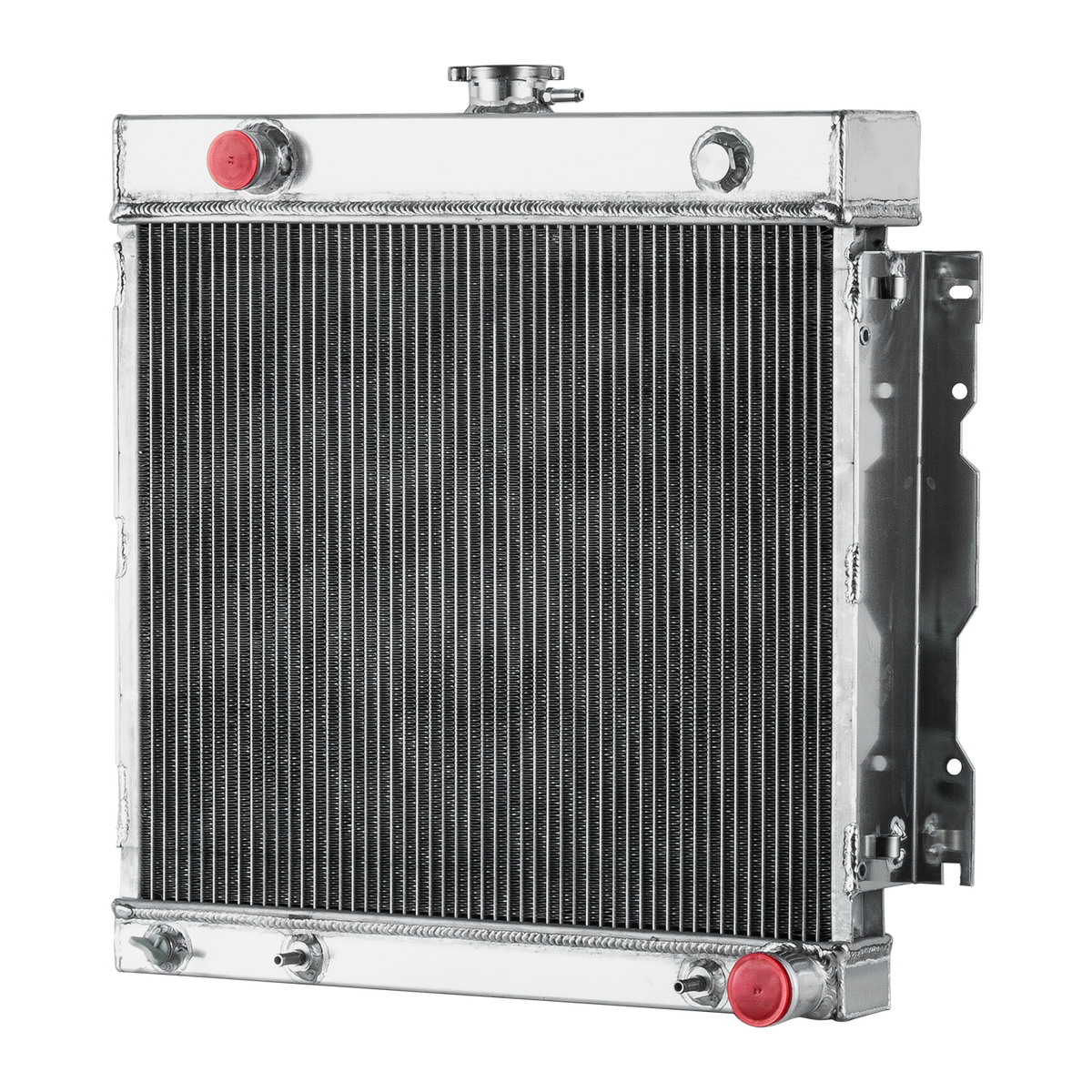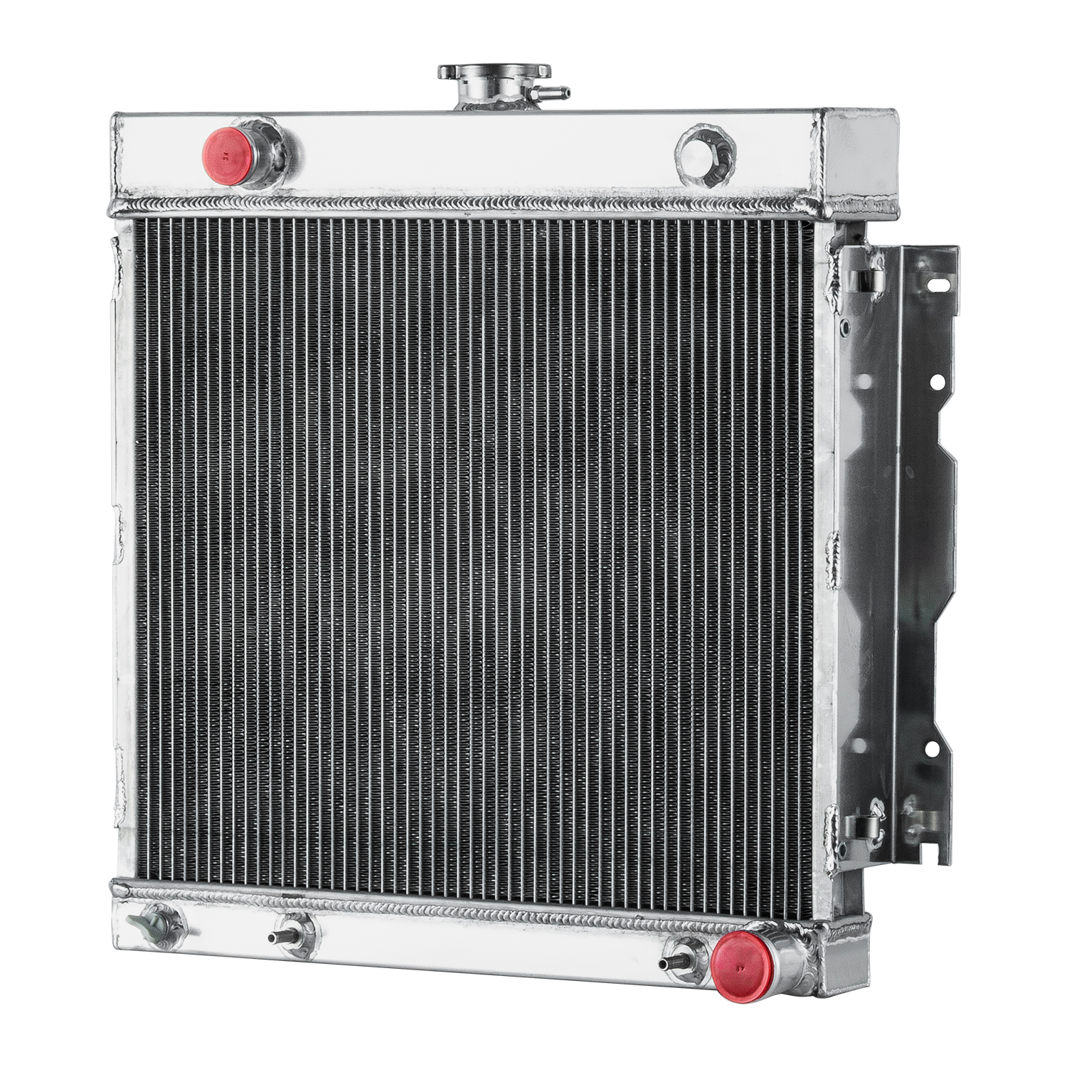 This aluminum radiator is designed to provide maximum cooling efficiency to prevent premature engine failure. Its light-weight, and high-heat transferring aluminum features a tube and fin design that, dramatically increases surface area that enables the heat to dissipate more efficiently. This Aluminum Radiator is at least 40% more efficient than stock ones. Most importantly, it has a much higher capacity for coolant than stock ones, which means that your cooling system will be more efficient and will be more resistant to temperature surges in racing applications.