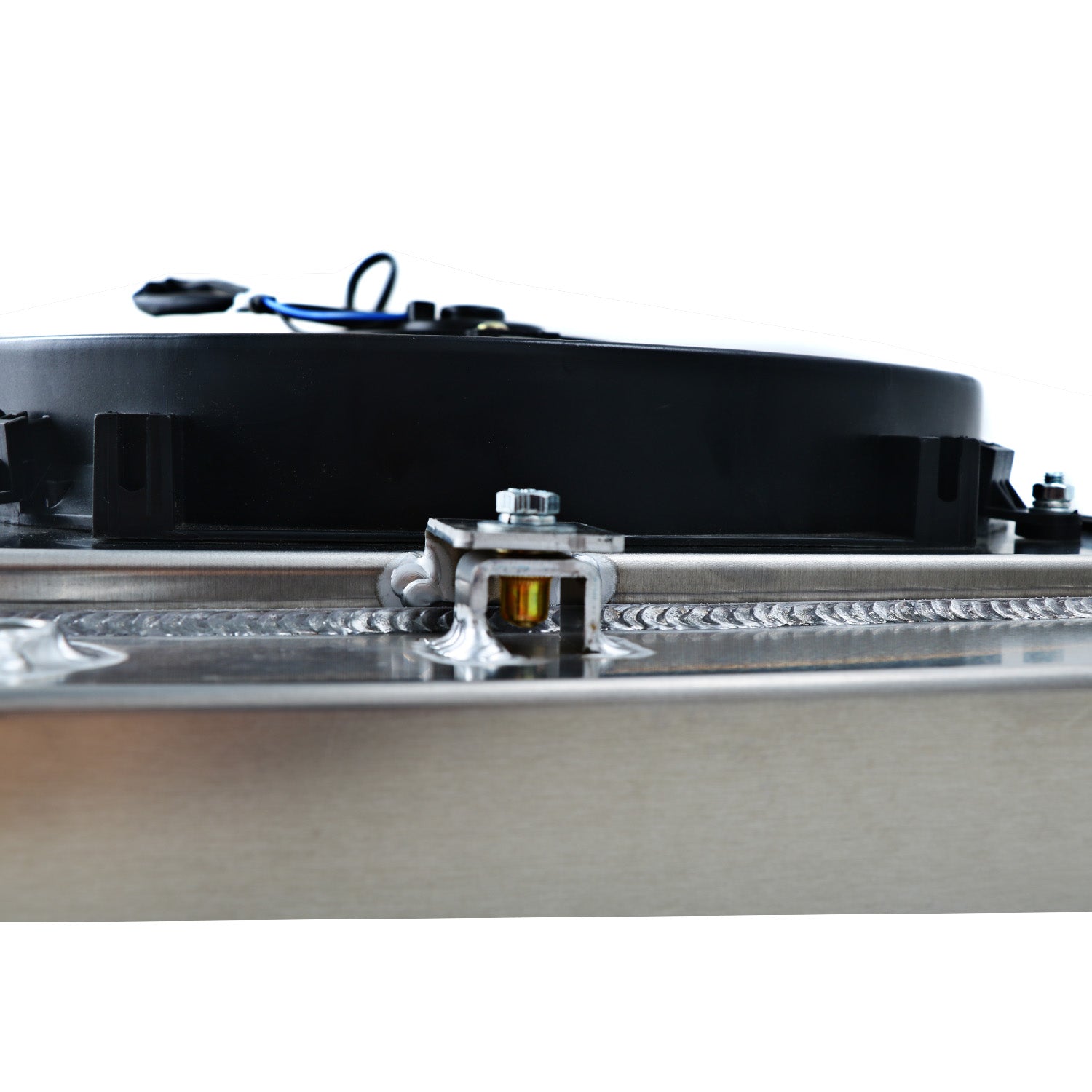 This AA5052 Aluminum Radiator is designed to provide maximum cooling efficiency to prevent premature engine failure. Its light-weight, and high-heat transferring aluminum features a tube and fin design that, dramatically increases surface area that enables the heat to dissipate more efficiently. This AA5052 Aluminum Radiator is at least 30%-45% more efficient than stock ones. Most importantly, it has a much higher capacity for coolant than stock ones, which means that your cooling system will be more efficient and will be more resistant to temperature surges in racing applications.