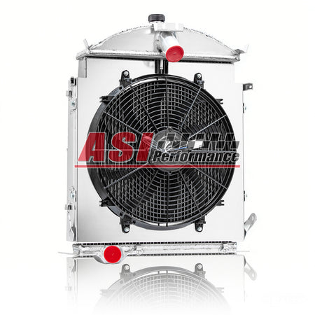ASI Performance 4 Row Aluminum Radiator Shroud Fan For 1928 1929 Ford Model A Heavy Duty 3.3L L4