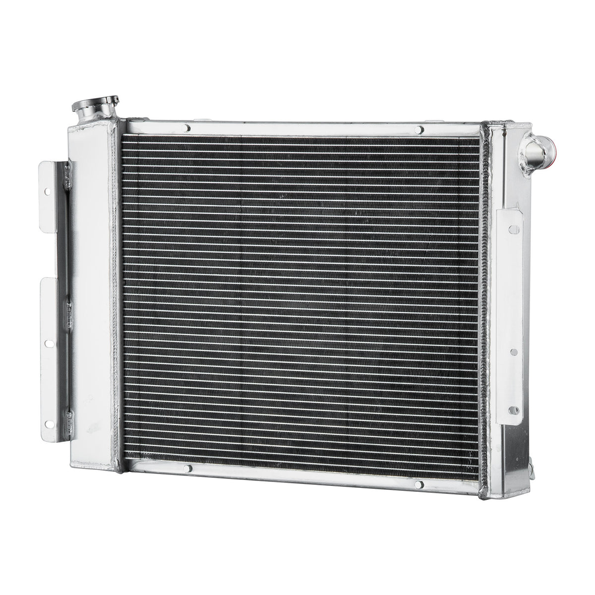 This aluminum radiator is designed to provide maximum cooling efficiency to prevent premature engine failure. Its light-weight, and high-heat transferring aluminum features a tube and fin design that, dramatically increases surface area that enables the heat to dissipate more efficiently. This Aluminum Radiator is at least 40% more efficient than stock ones. Most importantly, it has a much higher capacity for coolant than stock ones, which means that your cooling system will be more efficient and will be more resistant to temperature surges in racing applications.