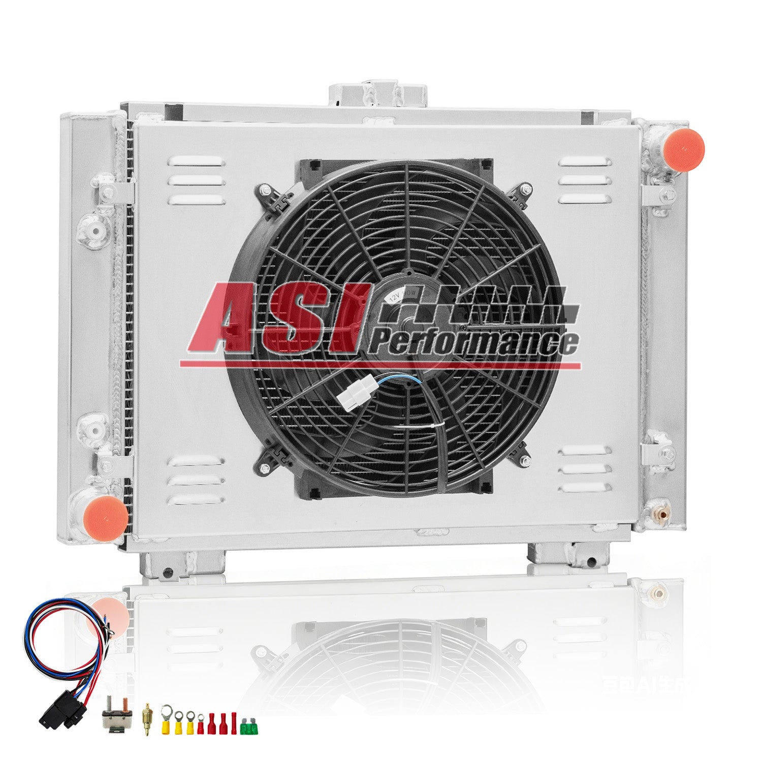 ASI Performance 4 Row Core Aluminum Radiator Shroud Fan Fits 1964 Ford Galaxie 500 500XL L6 V8