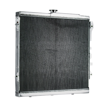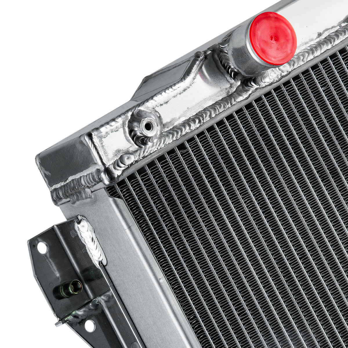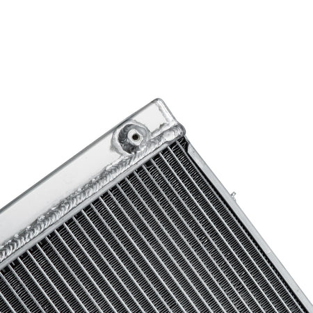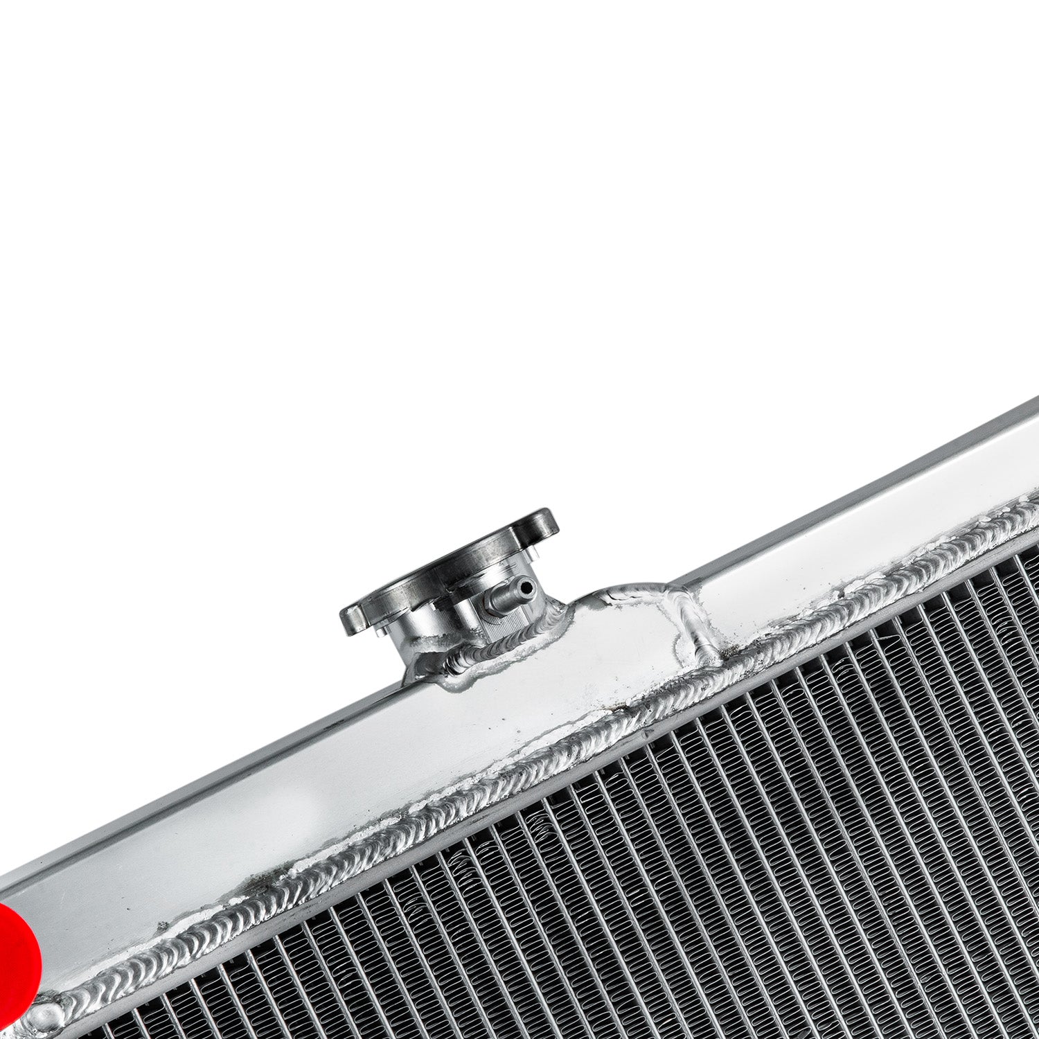 This aluminum radiator is designed to provide maximum cooling efficiency to prevent premature engine failure. Its light-weight, and high-heat transferring aluminum features a tube and fin design that, dramatically increases surface area that enables the heat to dissipate more efficiently. This Aluminum Radiator is at least 40% more efficient than stock ones. Most importantly, it has a much higher capacity for coolant than stock ones, which means that your cooling system will be more efficient and will be more resistant to temperature surges in racing applications.