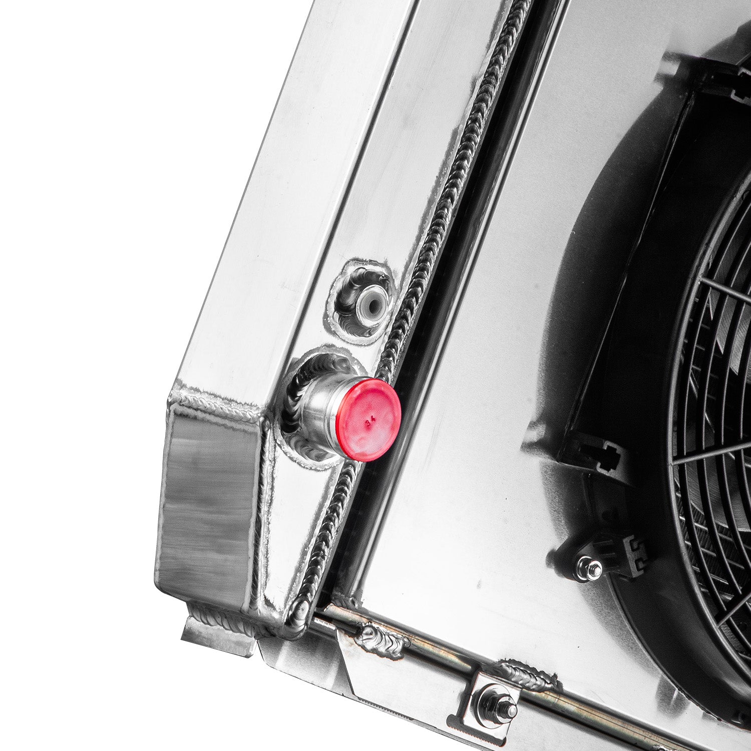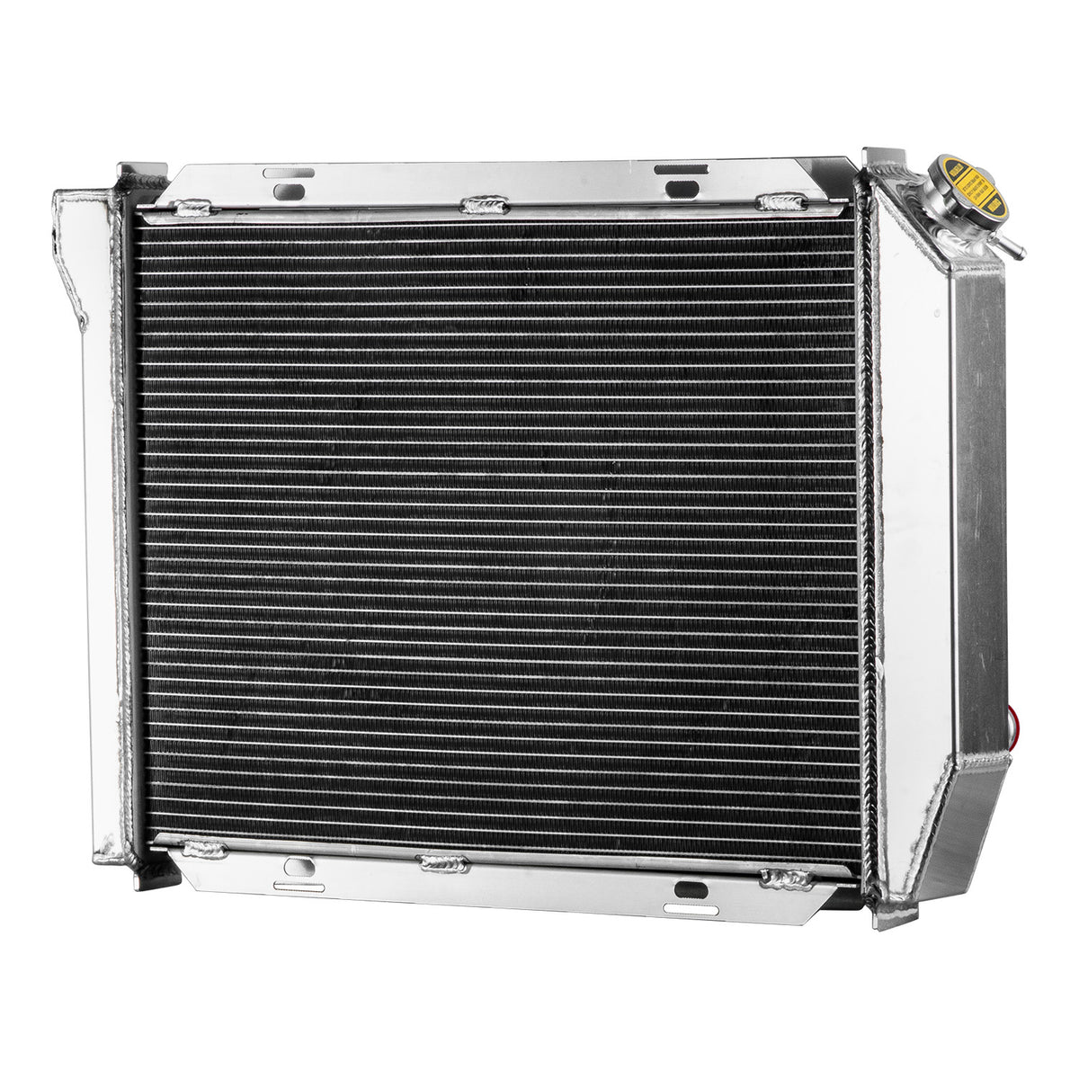 This aluminum radiator is designed to provide maximum cooling efficiency to prevent premature engine failure. Its light-weight, and high-heat transferring aluminum features a tube and fin design that, dramatically increases surface area that enables the heat to dissipate more efficiently. This Aluminum Radiator is at least 40% more efficient than stock ones. Most importantly, it has a much higher capacity for coolant than stock ones, which means that your cooling system will be more efficient and will be more resistant to temperature surges in racing applications.