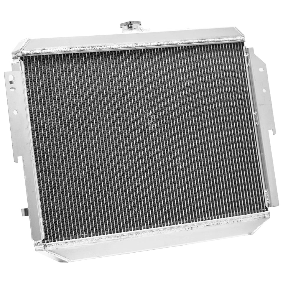This Aluminum Radiator is designed to provide maximum cooling efficiency to prevent premature engine failure. Its light-weight, and high-heat transferring aluminum features a tube and fin design that, dramatically increases surface area that enables the heat to dissipate more efficiently. This Aluminum Radiator is at least 30%-45% more efficient than stock ones. Most importantly, it has a much higher capacity for coolant than stock ones, which means that your cooling system will be more efficient and will be more resistant to temperature surges in racing applications.