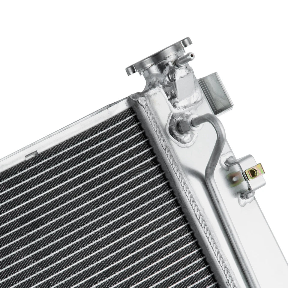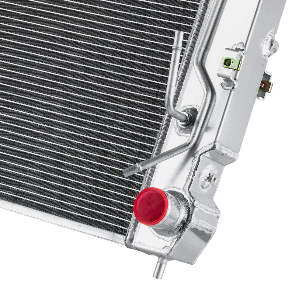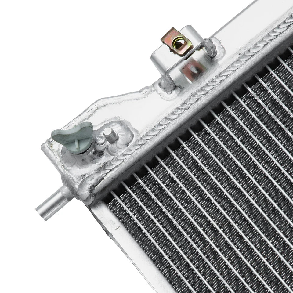 This Aluminum Radiator is designed to provide maximum cooling efficiency to prevent premature engine failure. Its light-weight, and high-heat transferring aluminum features a tube and fin design that, dramatically increases surface area that enables the heat to dissipate more efficiently. This Aluminum Radiator is at least 30%-45% more efficient than stock ones. Most importantly, it has a much higher capacity for coolant than stock ones, which means that your cooling system will be more efficient and will be more resistant to temperature surges in racing applications.