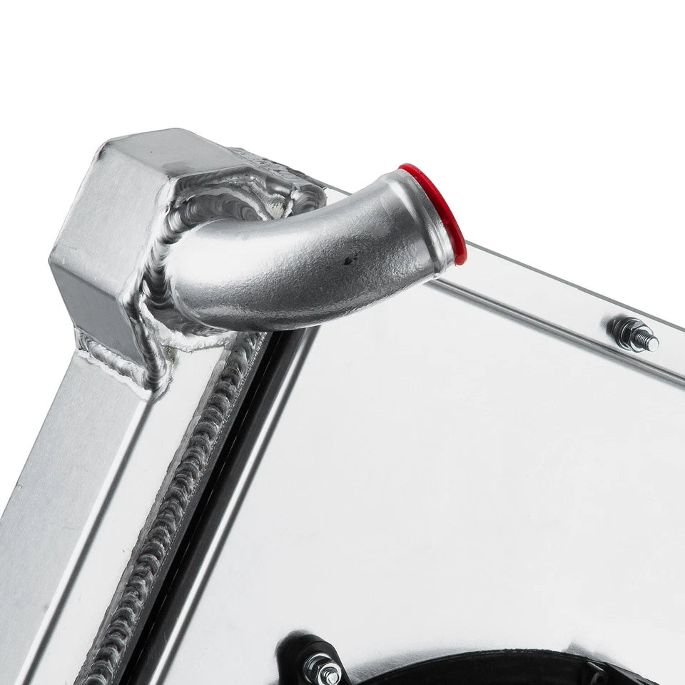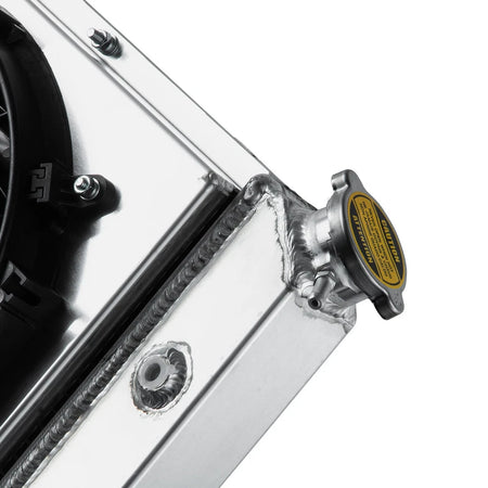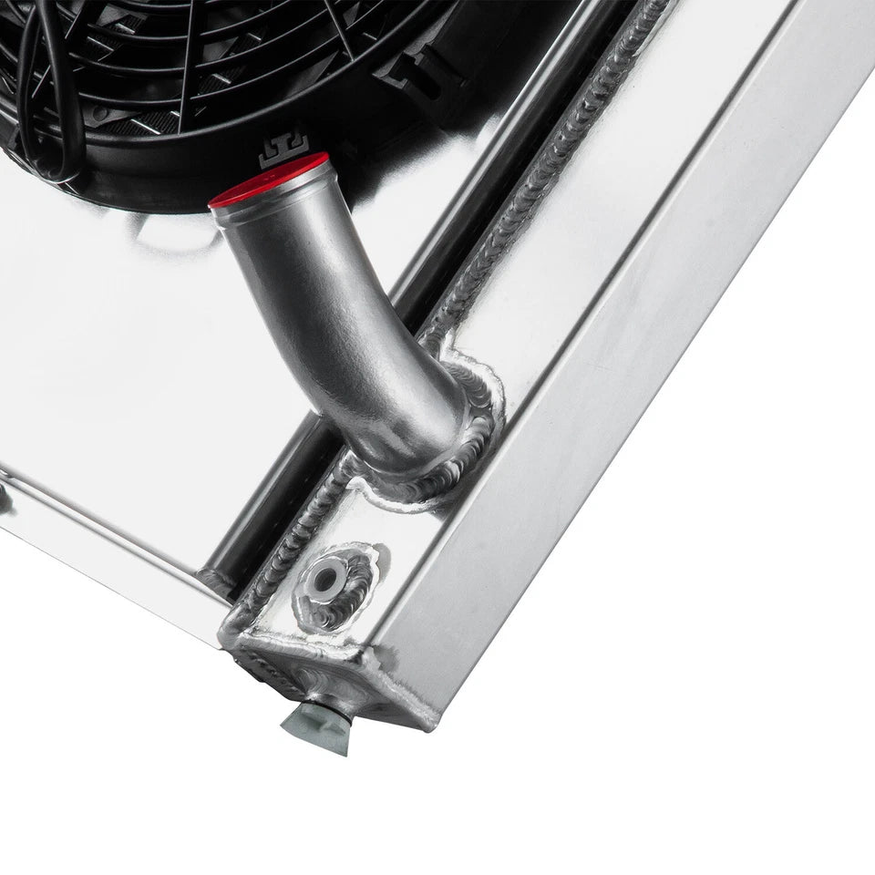 This Aluminum Radiator is designed to provide maximum cooling efficiency to prevent premature engine failure. Its light-weight, and high-heat transferring aluminum features a tube and fin design that, dramatically increases surface area that enables the heat to dissipate more efficiently. This Aluminum Radiator is at least 30%-45% more efficient than stock ones. Most importantly, it has a much higher capacity for coolant than stock ones, which means that your cooling system will be more efficient and will be more resistant to temperature surges in racing applications.