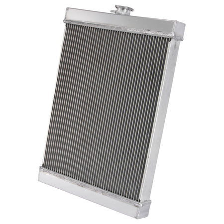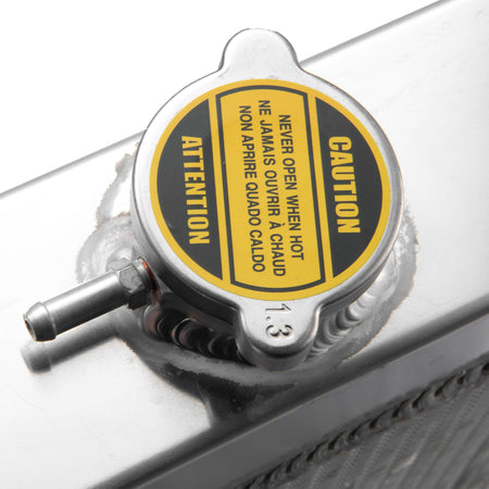 This aluminum radiator is designed to provide maximum cooling efficiency to prevent premature engine failure. Its light-weight, and high-heat transferring aluminum features a tube and fin design that, dramatically increases surface area that enables the heat to dissipate more efficiently. This Aluminum Radiator is at least 40% more efficient than stock ones. Most importantly, it has a much higher capacity for coolant than stock ones, which means that your cooling system will be more efficient and will be more resistant to temperature surges in racing applications.