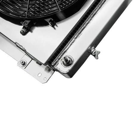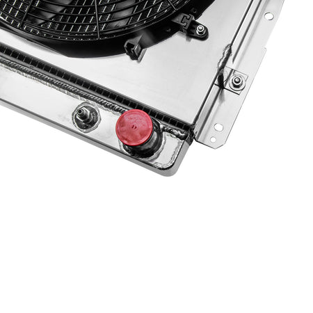 This aluminum radiator is designed to provide maximum cooling efficiency to prevent premature engine failure. Its light-weight, and high-heat transferring aluminum features a tube and fin design that, dramatically increases surface area that enables the heat to dissipate more efficiently. This Aluminum Radiator is at least 40% more efficient than stock ones. Most importantly, it has a much higher capacity for coolant than stock ones, which means that your cooling system will be more efficient and will be more resistant to temperature surges in racing applications.