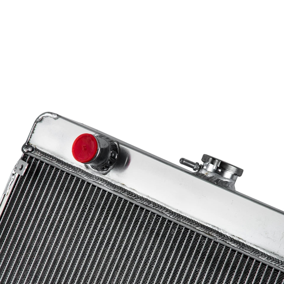 This Aluminum Radiator is designed to provide maximum cooling efficiency to prevent premature engine failure. Its light-weight, and high-heat transferring aluminum features a tube and fin design that, dramatically increases surface area that enables the heat to dissipate more efficiently. This Aluminum Radiator is at least 30%-45% more efficient than stock ones. Most importantly, it has a much higher capacity for coolant than stock ones, which means that your cooling system will be more efficient and will be more resistant to temperature surges in racing applications.