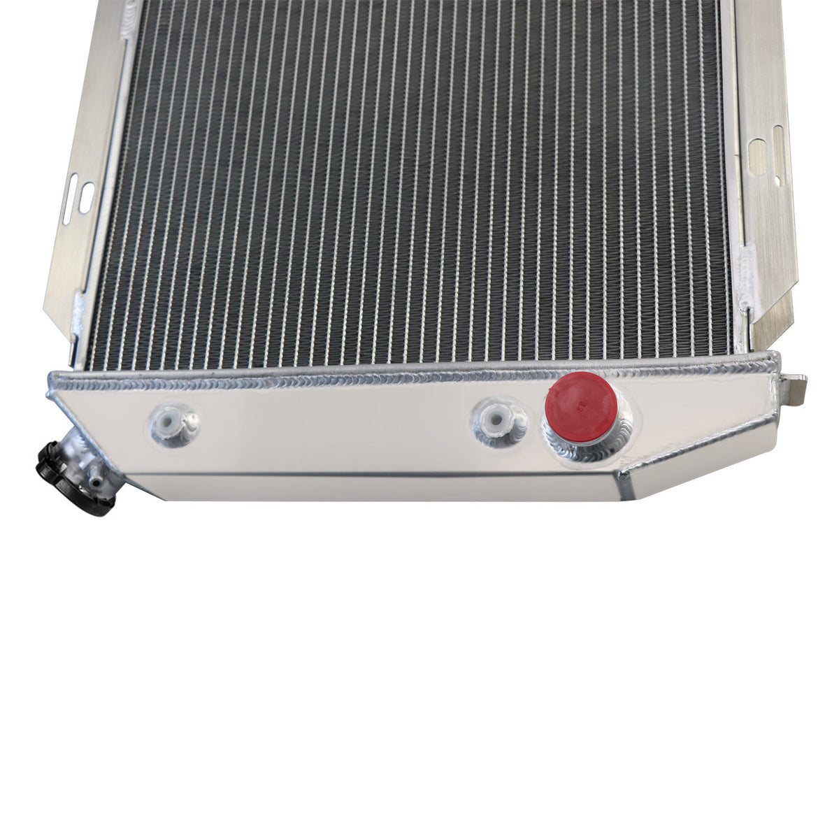 This aluminum radiator is designed to provide maximum cooling efficiency to prevent premature engine failure. Its light-weight, and high-heat transferring aluminum features a tube and fin design that, dramatically increases surface area that enables the heat to dissipate more efficiently. This Aluminum Radiator is at least 40% more efficient than stock ones. Most importantly, it has a much higher capacity for coolant than stock ones, which means that your cooling system will be more efficient and will be more resistant to temperature surges in racing applications.